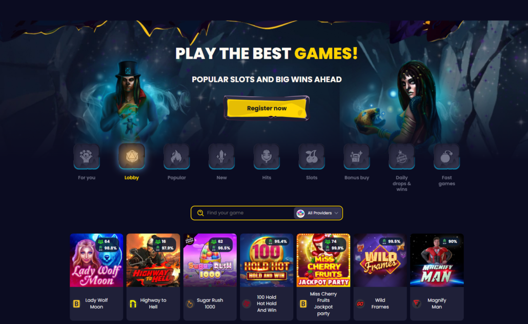 120 % do 800 € + 125 brezplačnih vrtljajev je dobrodošlica, s katero vas pričaka SlotsGem Casino, nova fantazijska spletna igralnica, ki že na prvi pogled izstopa s kakovostnim dizajnom in prepoznavno grafično podobo. Spletna stran se odvija v mističnem, pravljičnem okolju – z junaki, vilami in ogenjskim ozadjem – kar ustvari vtis avanture, v kateri je glavna nagrada vaš naslednji veliki dobitek.